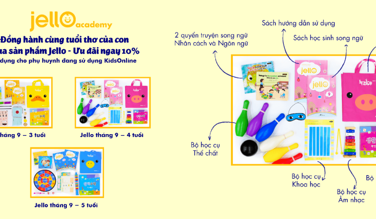 [Độc quyền tại KidsOnline] Ưu đãi tới 10% Bộ tài liệu & học cụ Jello khi các bố mẹ KidsOnline đăng ký mua sản phẩm cho các bé