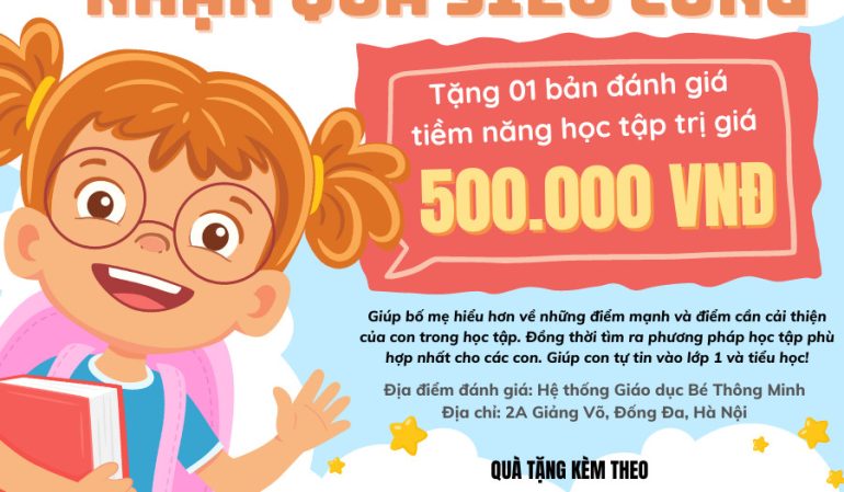 Mùa tựu trường tháng 9 này, KidsOnline cùng Bé Thông Minh dành tặng các bé học sinh tại Hà Nội 1 buổi học trải nghiệm trực tuyến theo chương trình Phát triển Tư duy và Kỹ năng FasTracKids (dành cho trẻ từ 3-9 tuổi) kèm 1 bản đánh giá tiềm năng học tập FasTracKids trị giá 500.000 VNĐ do các chuyên gia nhiều năm kinh nghiệm tại Bé Thông Minh đánh giá. Giúp bố mẹ hiểu hơn về những điểm mạnh, điểm yếu của con trong học tập. Đồng thời tìm ra được phương pháp học tập hiệu quả nhất cho các con.
