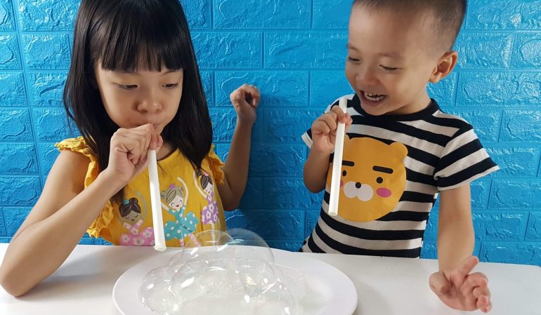 Thổi bong bóng là trò chơi chưa bao giờ hết hot với các bé ở các độ tuổi. Bạn thử để cho bé tắm một mình xem. Kidsonline tin rằng chai sữa tắm có thể sẽ vơi đi rất nhiều. Hoặc